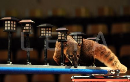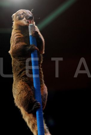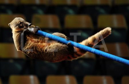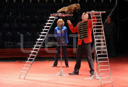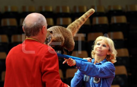 Dresētāji Viktors Ņikuļins un Oksana Vigorņicka ar degunlāci uzstājas ...
