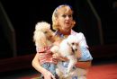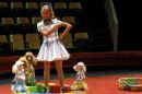 Dresētāja Oksana Vigorņicka ar saviem audzēkņiem uzstājas preses ...