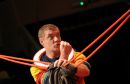 Dresētājs Viktors Ņikuļins ar degunlāci uzstājas preses konferences ...