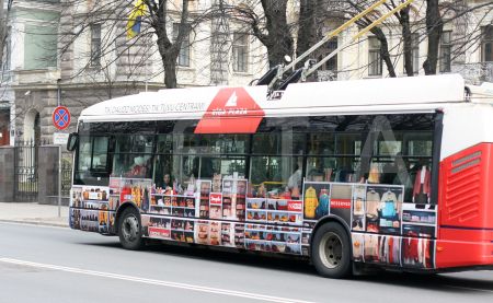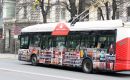 Trolejbuss ar "Rīga Plaza" reklāmu.