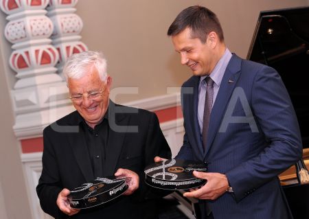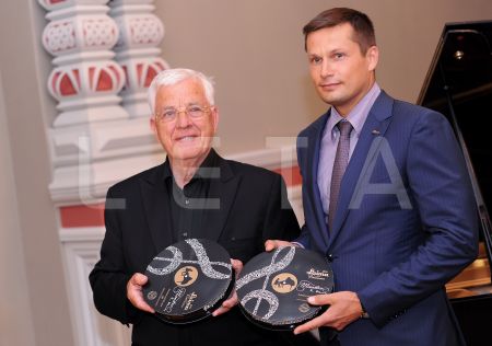 Maestro Raimonds Pauls (no kreisās) un AS "Laima" valdes ...