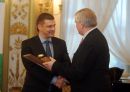 Jēkabpils domes priekšsēdētājs Leonīds Salcevičs saka pateicības ...
