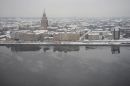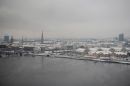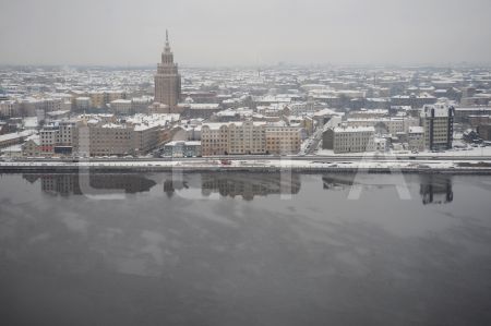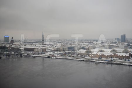 Skats no Latvijas Televīzijas ēkas uz Daugavu un pilsētu.