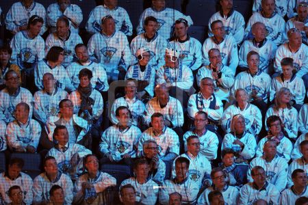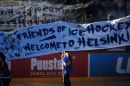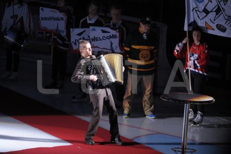Somu akardeonists Kimo Pohjonens uzstājas Pasaules čempionāta hokejā ...