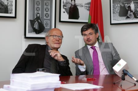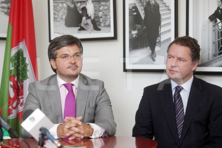 Koncertzāles projekta vadītājs Ints Dālderis (no kreisās) un Liepājas ...