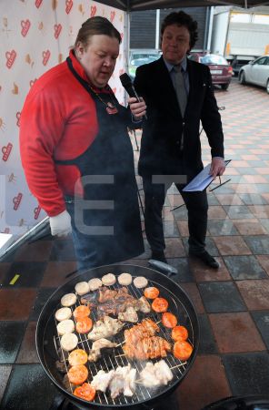 Pavārs Ints Bekers (no kreisās) un pasākuma vadītājs Valters Krauze ...