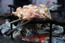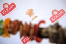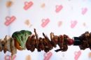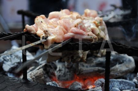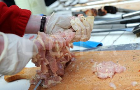 Marinēta vistas gaļa uz iesma.