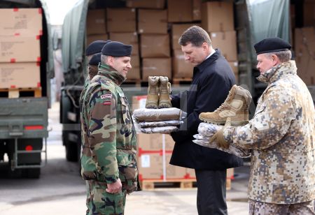 Aizsardzības ministrs Raimonds Vējonis (no labās) un Nacionālo ...