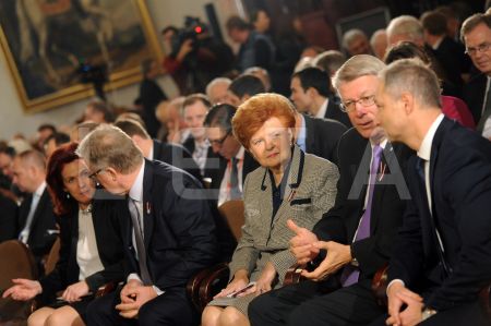 Saeimas priekšsēdētāja Solvita Āboltiņa (no kreisās). eksprezidenti ...
