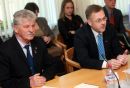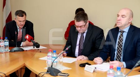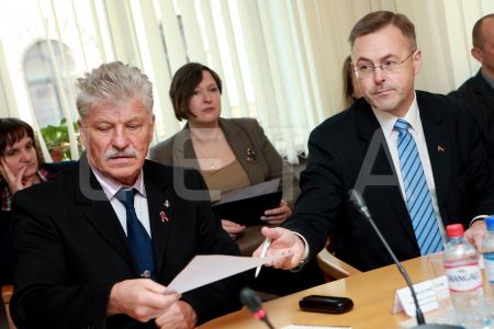 Komisijas locekļi Kārlis Krēsliņš (no kreisās) un Aleksejs Loskutovs ...
