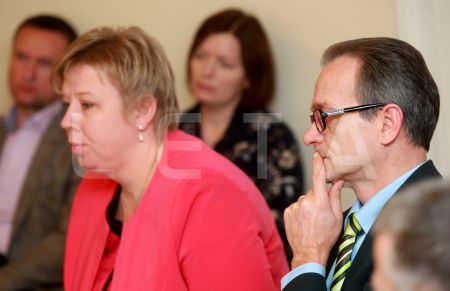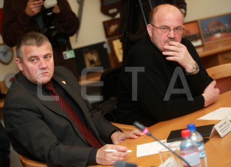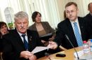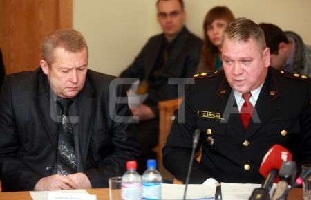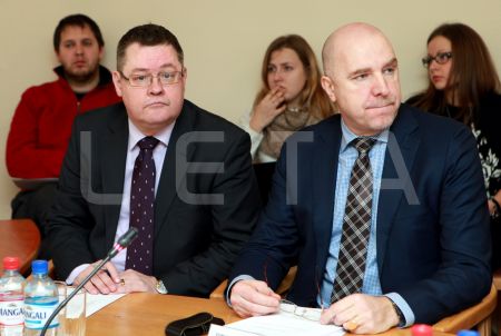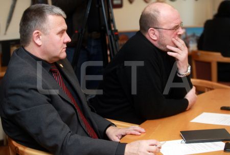 Komisijas locekļi Gunārs Rusiņš (no kreisās) un Jānis Ādamsons ...
