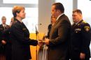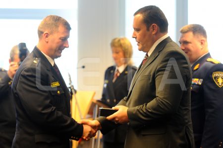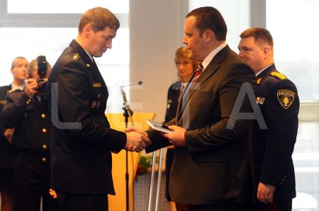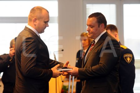 Iekšlietu ministrs Rihards Kozlovskis (no labās) Valsts policijas 94. ...