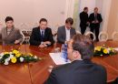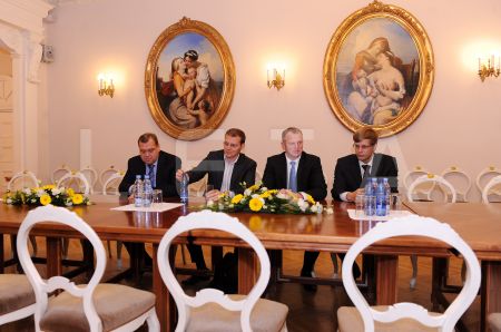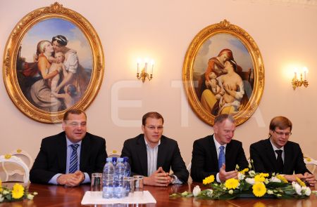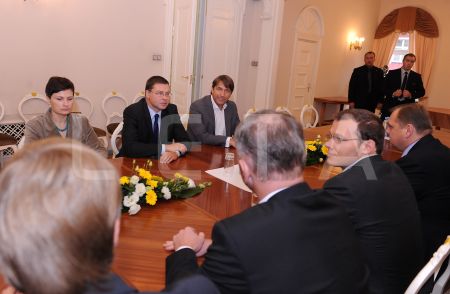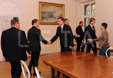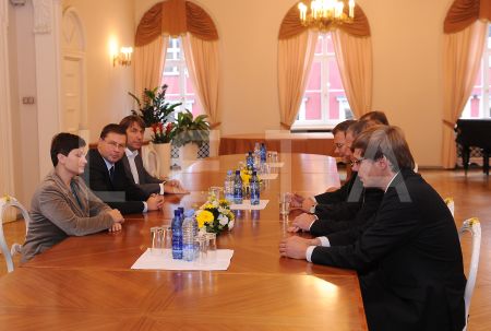 Ministru prezidents Valdis Dombrovskis (no kreisās) tiekas ar ...