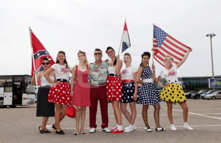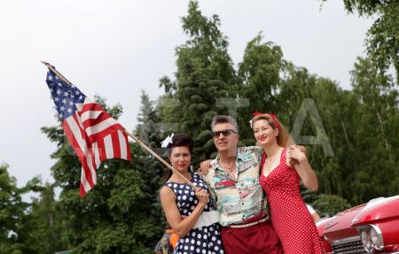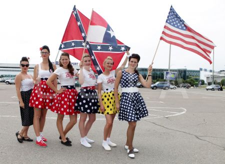 Kluba "Rockabilly House" meitenes, tērptas "rockabilly" stila drēbēs, ...