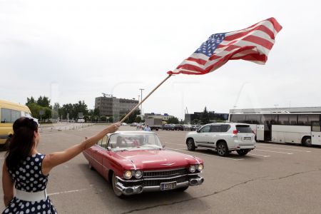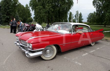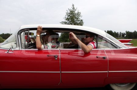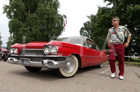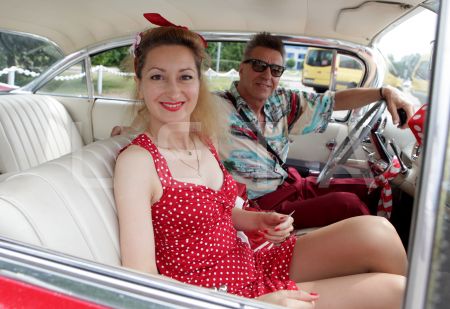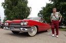 Kluba "Rockabilly House" īpašnieks Pits Andersons ar retro automašīnu ...