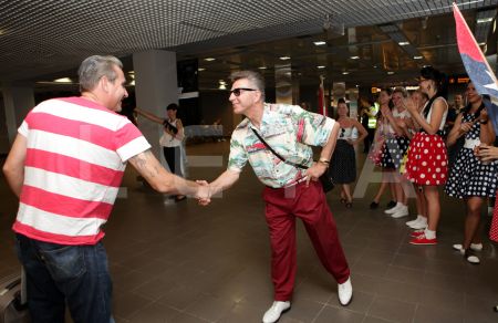 Kluba "Rockabilly House" īpašnieks Pits Andersons ieradies lidostā, ...