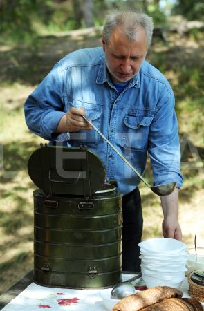 "Latvijas Avīzes" fotogrāfs Timurs Subhankulovs pie zupas katla ...