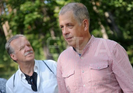 Izdevniecības "Jumava" vadītājs Juris Visockis (no kreisās) un Rīgas ...