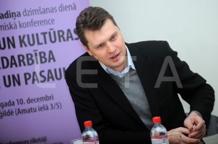 Mecenāts Vilis Vītols piedalās preses konferencē, kurā iepazīstina ar ...