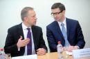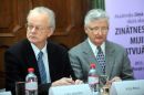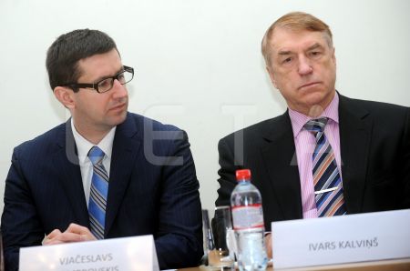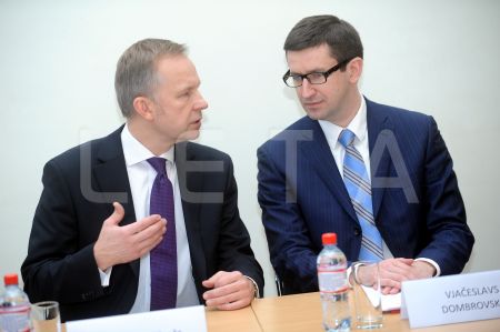 Izglītības un zinātnes ministrs Vjačeslavs Dombrovskis (no kreisās) ...