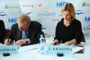 Latvijas Hokeja federācijas prezidents Kirovs Lipmans un AS "Aldaris" ...