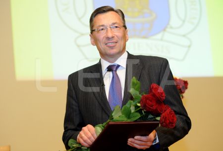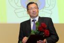 Akadēmijas ārzemju loceklis Alvis Brāzma saka pateicības vārdus pēc ...