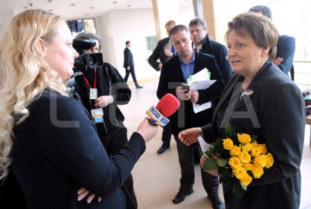 Ministru prezidente Laimdota Straujuma atbild uz žurnālistu ...