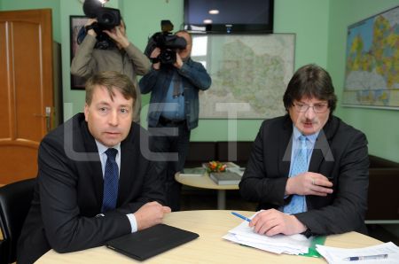 Ekonomikas ministrs Vjačeslavs Dombrovskis (no kreisās) un ...