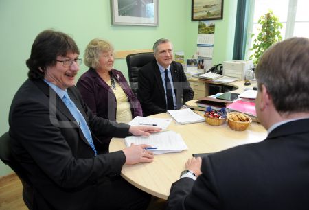 Labklājības ministrs Uldis Augulis (no kreisās), Latvijas Pašvaldību ...