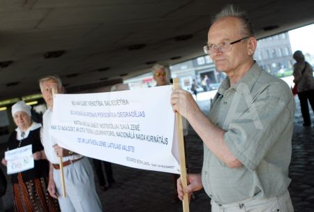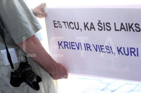 Politiski represētā Valtera Rudzīša rīkotā piketa dalībnieks pie ...