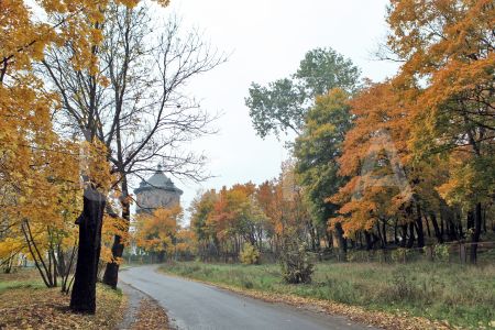 Rudens ainava ar ūdenstorni Mazā Matīsa ielā.