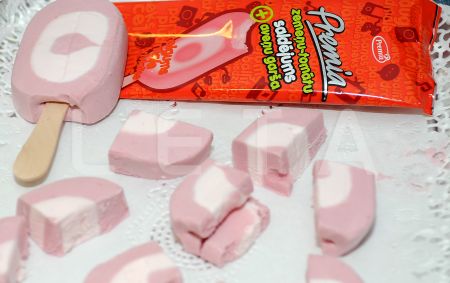 AS "Premia Foods" jaunais zemeņu - tomātu saldējums ar aveņu garšu..