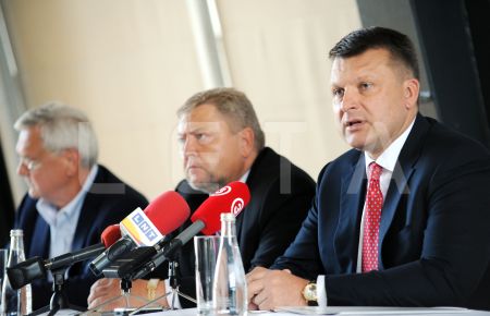 Politiķi Vilis Krištopans (no kreisās), Andris Bērziņš un partijas ...