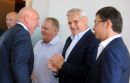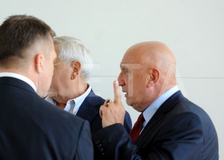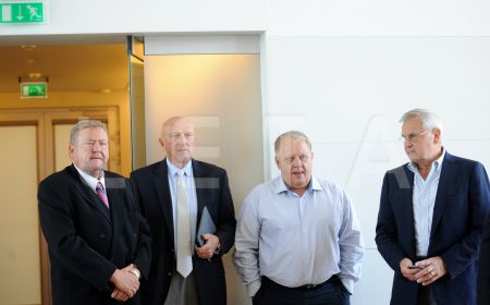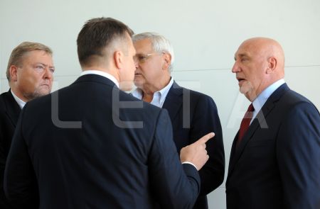 Politiķi Vilis Krištopans (no kreisās), Andris Bērziņš, Jānis Jurkāns ...
