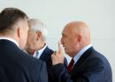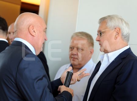 Politiķi Vilis Krištopans (no kreisās) un Andris Bērziņš pirms ...