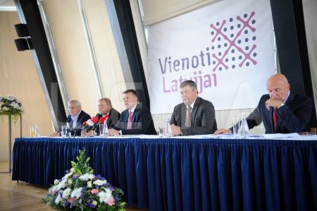 Partijas "Vienoti Latvijai" līderi - partijas vadītājs Ainārs Šlesers ...