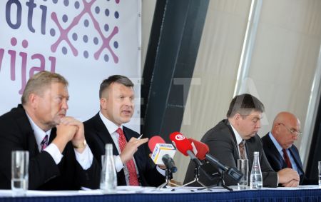 Partijas "Vienoti Latvijai" līderi - ekspremjeri Ivars Godmanis (no ...