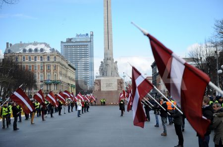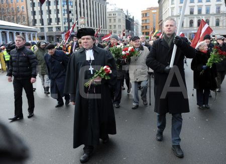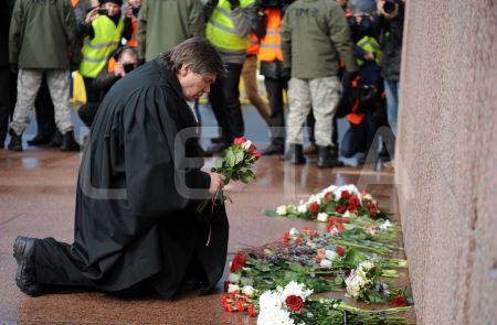 "Nacionālists" Aivars Garda piedalās ziedu nolikšanas pasākumā pie ...