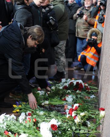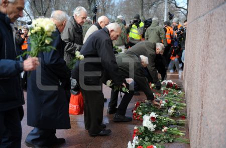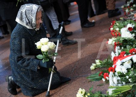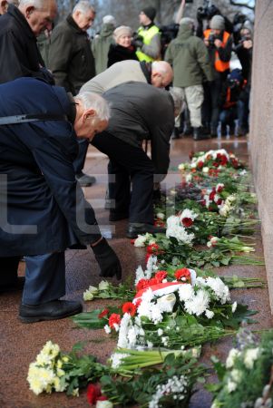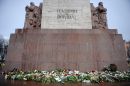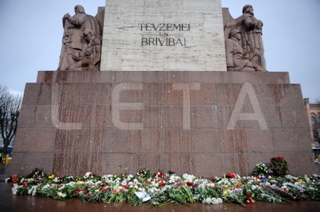 Sirmgalve noliek ziedus pie Brīvības pieminekļa, godinot latviešu ...