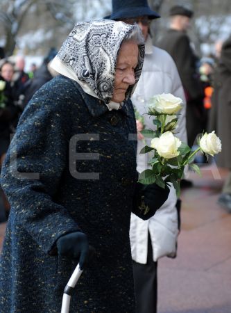 Sieviete piedalās latviešu leģionāru piemiņas pasākumā pie Brīvības ...