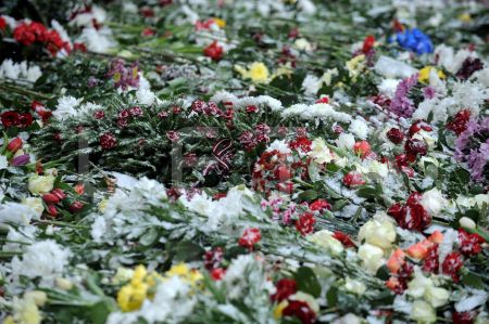 Karogu aleja pie Brīvības pieminekļa, kur tiek nolikti ziedi, godinot ...