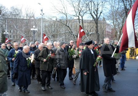 Latviešu leģionāru piemiņas pasākums pie Brīvības pieminekļa.