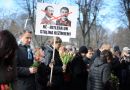 Gājiena dalībnieki noliek ziedus pie Brīvības pieminekļa, godinot ...