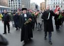 Mācītājs Guntis Kalme un gājiena dalībnieki dodas nolikt ziedus pie ...
