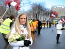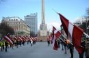 Gājiena dalībnieki dodas nolikt ziedus pie Brīvības pieminekļa, ...