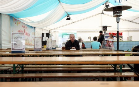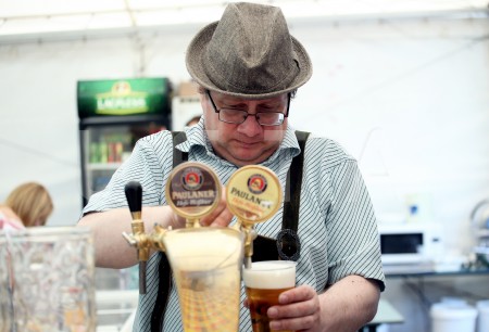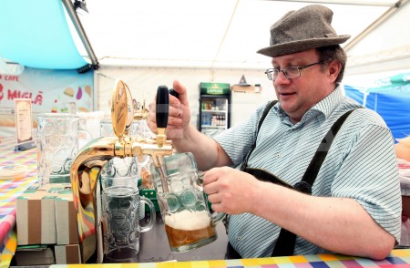 Apmeklētājs Rīgas "Oktoberfest" festivālā ostmalā.