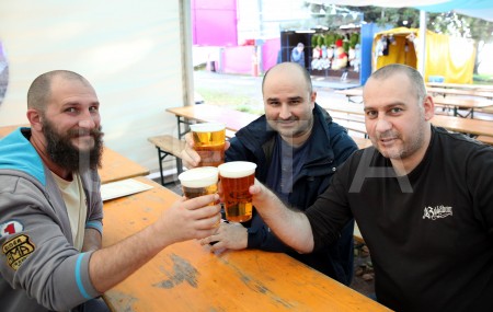 Apmeklētāji Rīgas "Oktoberfest" festivālā ostmalā.