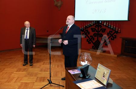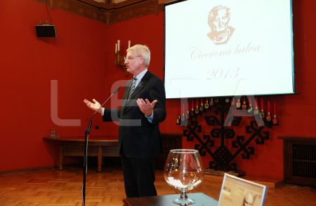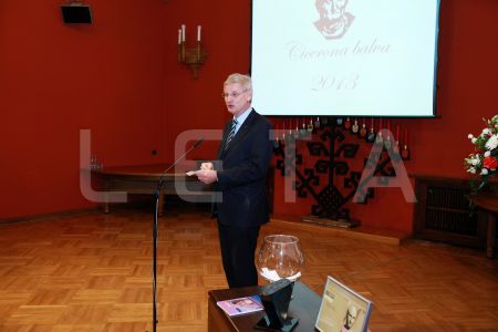Cicerona balvas projekta pārstāvis Miervaldis Mozers uzrunā ...