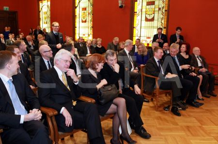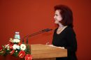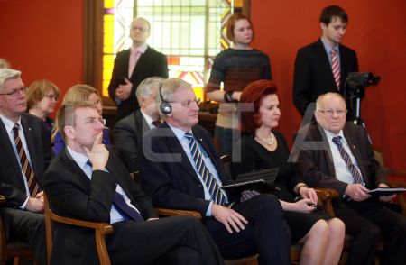 Saeimas priekšsēdētāja Solvita Āboltiņa uzrunā klātesošos sabiedrības ...