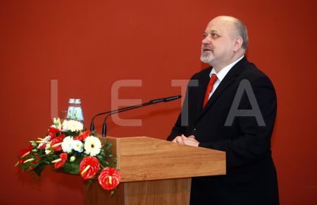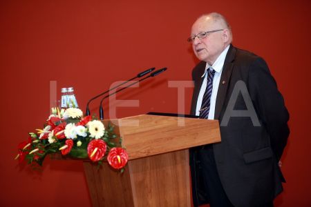 Akadēmiķis Jānis Stradiņš uzrunā klātesošos sabiedrības cieņas balvas ...